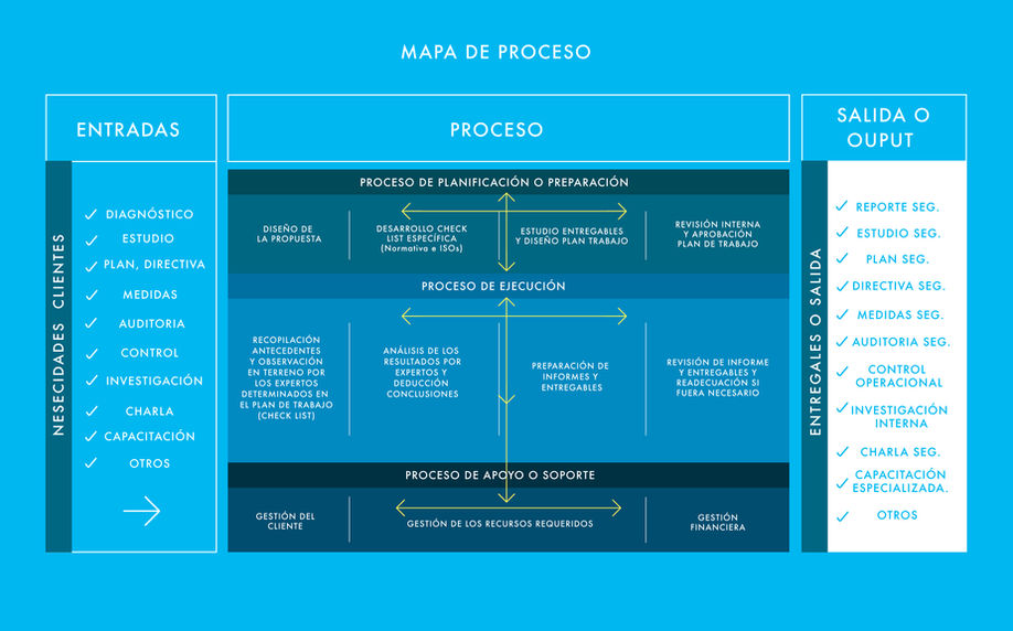 La observación de expertos constituye el principal insumo para obtener los mejores resultados, actividad que se desarrolla bajo una pauta secuencial de actividades o estándar, diseñado y elaborado previamente por la empresa sobre la base de la experiencia de sus socios, expertos colaboradores y las mejoras prácticas en el mercado, que permiten considerar todos los aspectos que son necesarios para obtener resultados completos, que no dejen fuera antecedentes valiosos y que tienen un impacto directo o indirecto en la seguridad y en los productos que nuestros clientes nos han requerido.